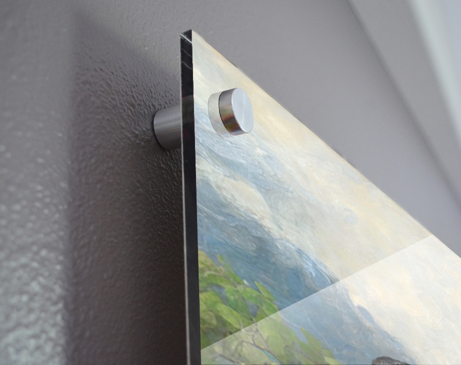 Printed to the edge - Ready to hang - provided with 4 premium polished aluminum stand off ( wall screws and mounting hardware provided )